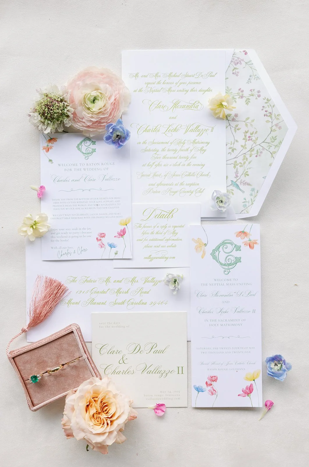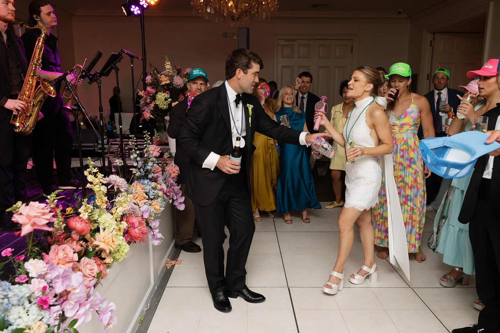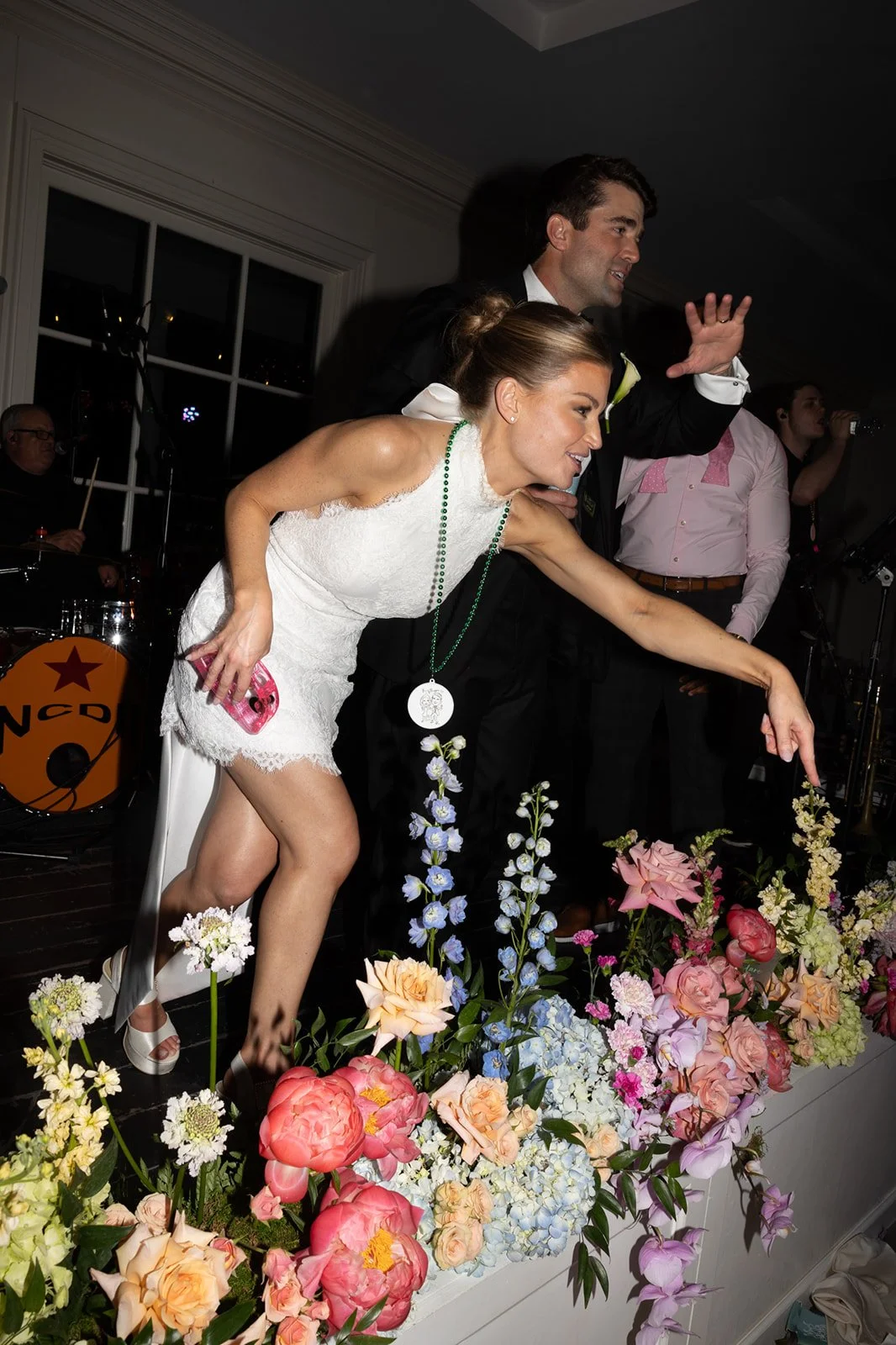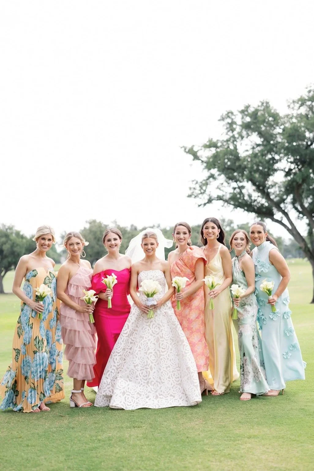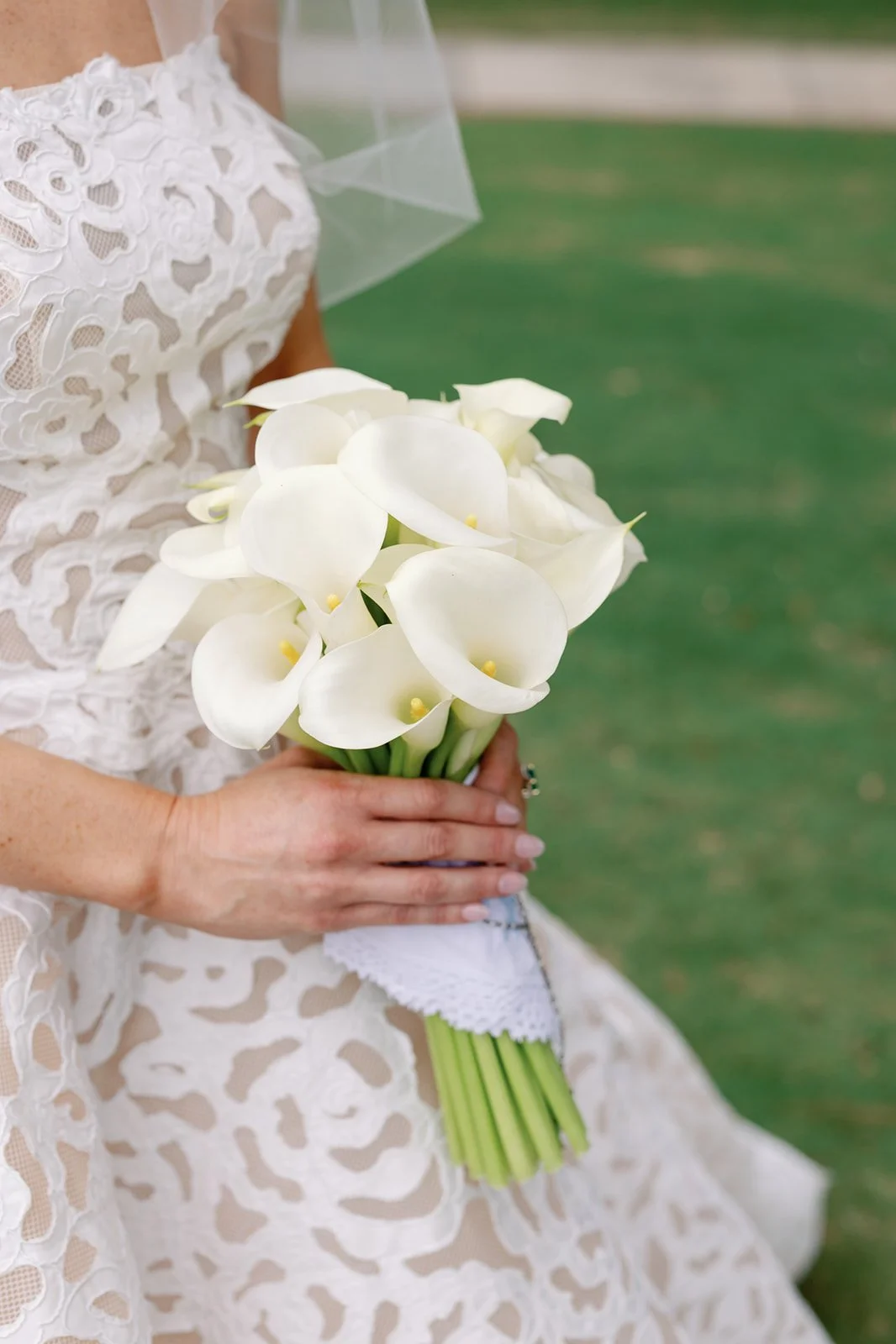 Clare took a unique approach to her florals, choosing all white Calla Lillies for her bridal party + a mix of colorful, seasonal blooms for her reception!