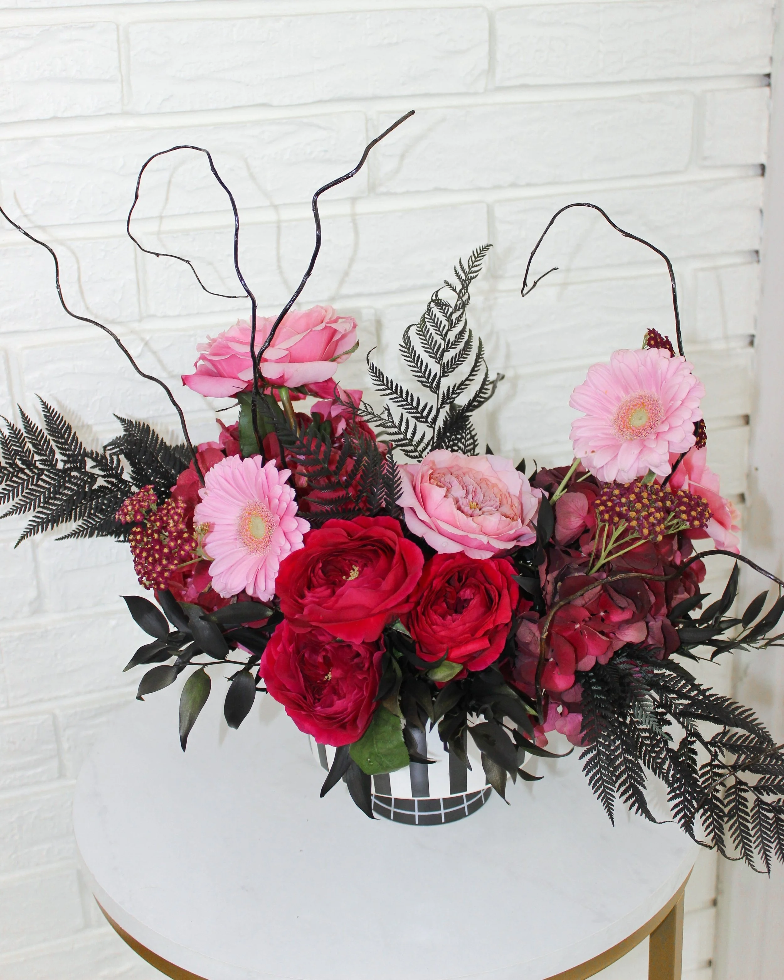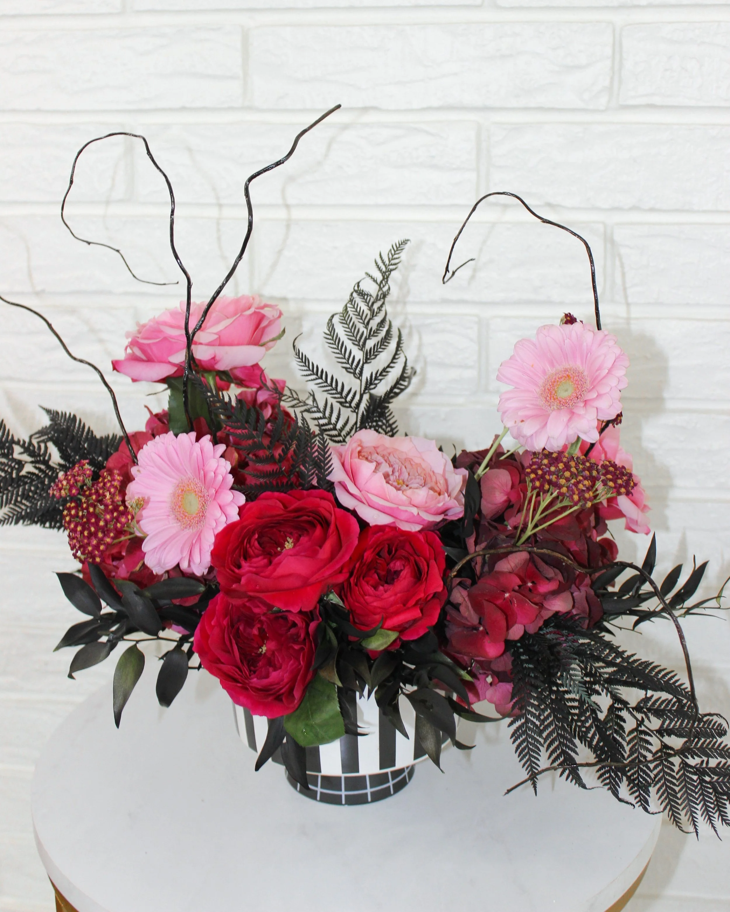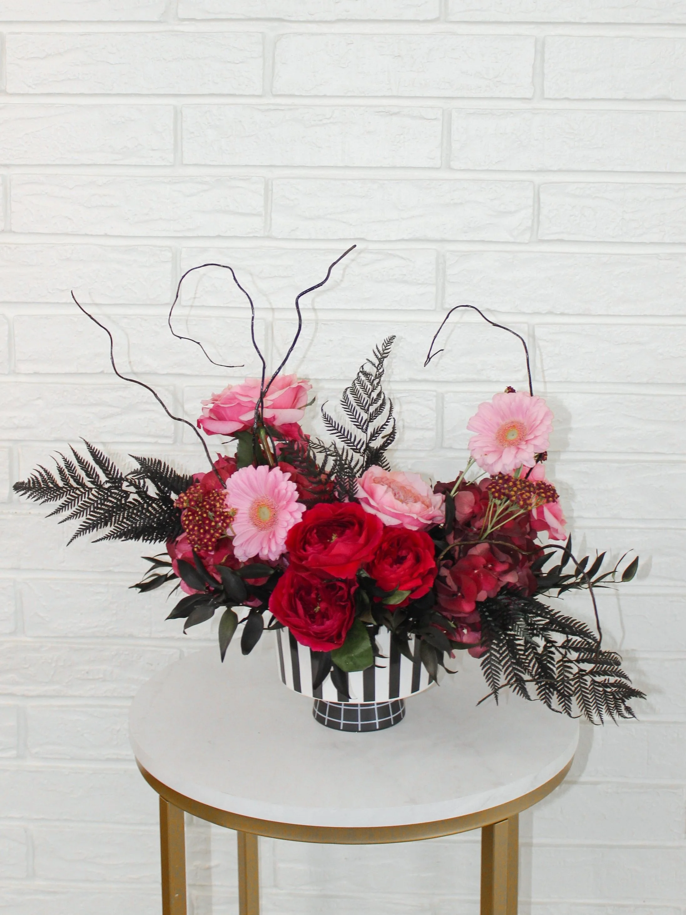 Because every haunted house needs a spooky floral arrangement. This black + white striped vase is a limited edition style available for the month of October only! Once it’s sold out, it’s gone!