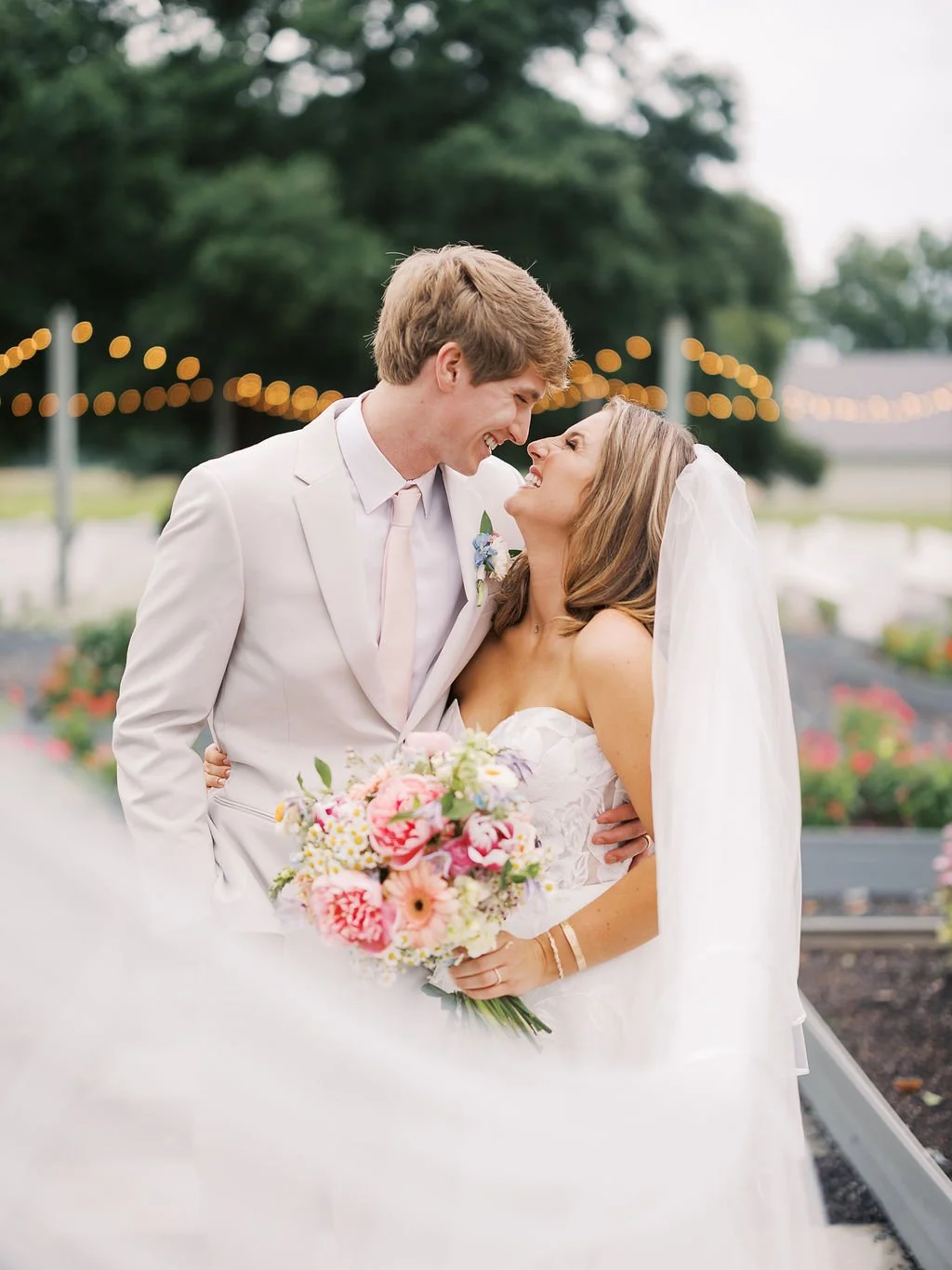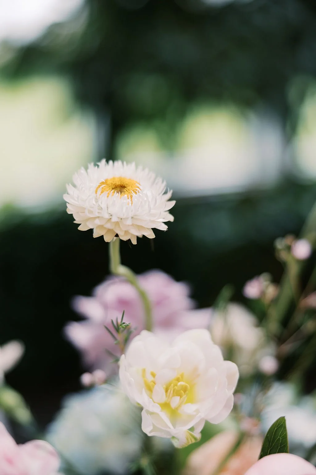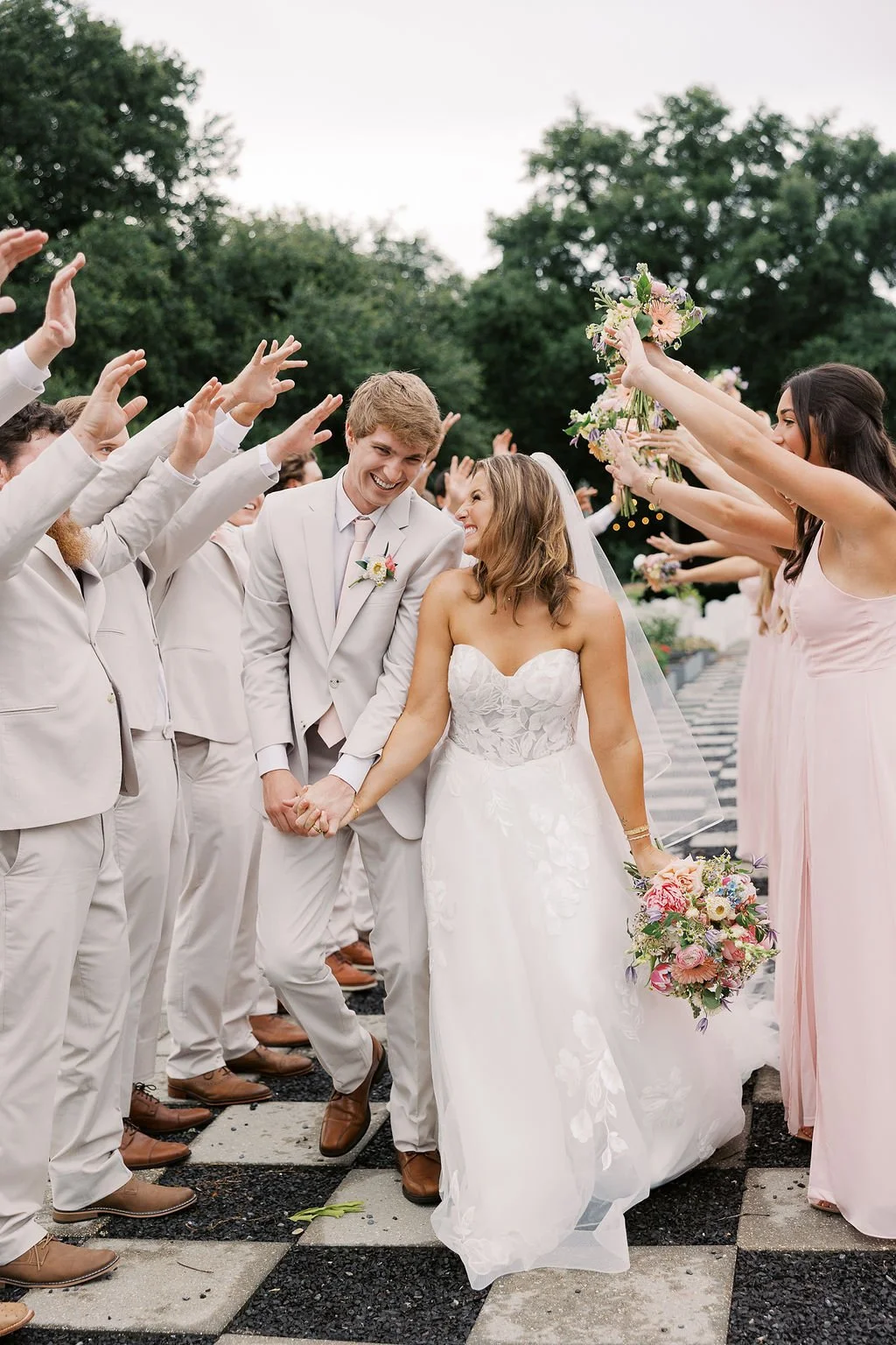 For her ceremony setup, Maura chose our tall gold harlow stands with the most whimsical florals! We placed two floral bursts on top of the stands and ziptied smaller bursts to the stand legs. The trailing effect made the ceremony installation look like it grew naturally along the harlow. We mossed the bases of the stands + added a burst on the ground to further accentuate that organic look.
